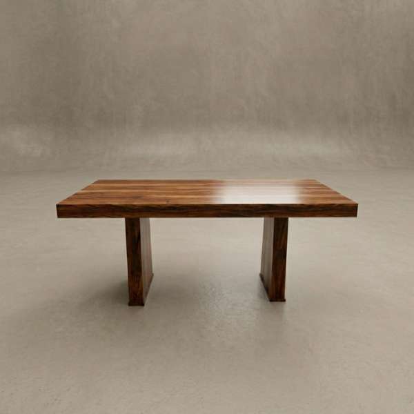 This premium Sheesham wood dining table is designed with a strong and stylish structure that highlights the natural beauty of solid wood. The thick rectangular tabletop showcases rich wood grains and a smooth polished finish, giving a warm and elegant look to your dining area. The wide and sturdy base design adds extra stability and a modern touch to the overall style.