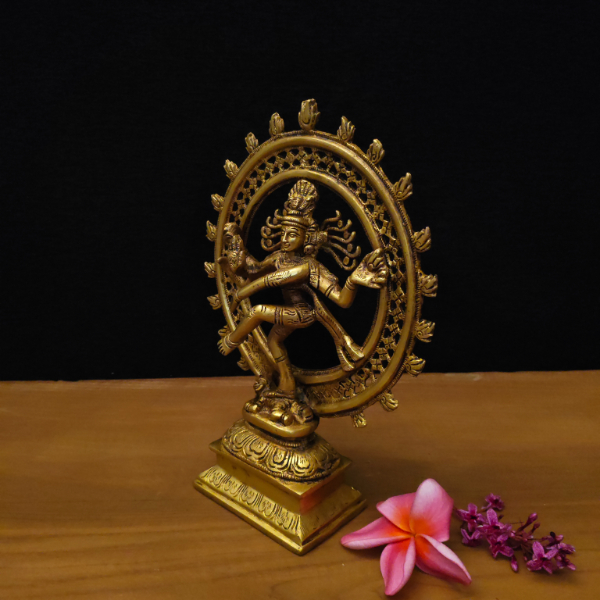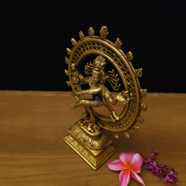 This Natarajar idol is made of pure brass, depicting Lord Shiva in his cosmic dance form. It is perfect for pooja rooms, temples, or as a home décor piece, symbolizing energy and divinity. With its shiny and durable finish, it also makes a meaningful gift. Available in the Tulsi Home Store, this brass Natarajar adds tradition and devotion to any space.