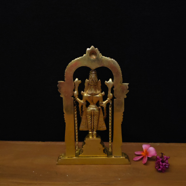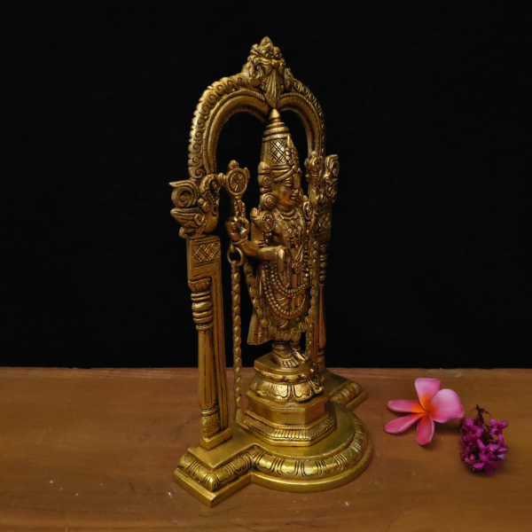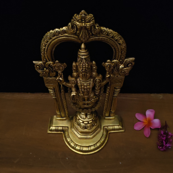 This Pure Brass Perumal Idol is beautifully crafted with detailed carvings and a traditional temple-style arch design. Lord Perumal (Vishnu) symbolizes protection, prosperity, and divine blessings.