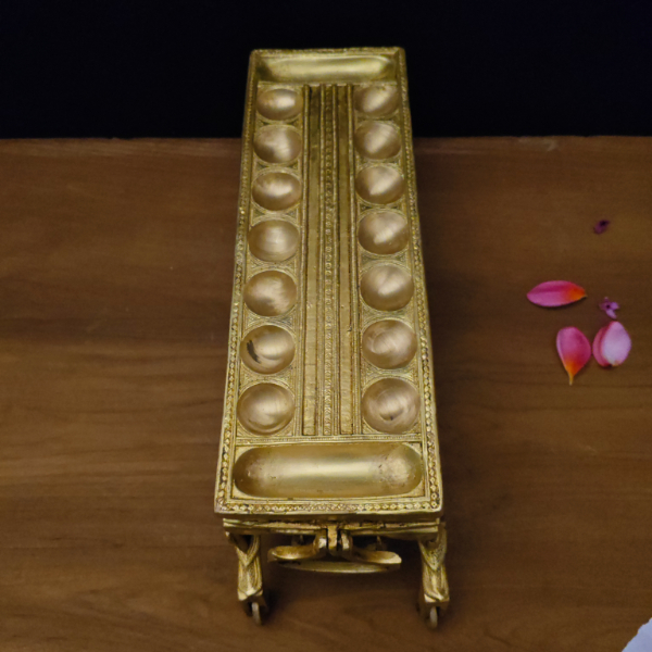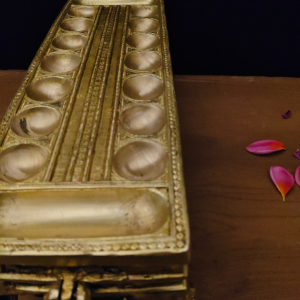 This Pure Brass Pallanguli Board is beautifully crafted with traditional engravings. Pallanguli is a classic South Indian game that also works as a heritage décor piece.