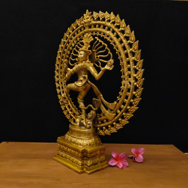 This Natarajar idol is made of pure brass, depicting Lord Shiva in his cosmic dance form. It is perfect for pooja rooms, temples, or as a home décor piece, symbolizing energy and divinity. With its shiny and durable finish, it also makes a meaningful gift. Available in the Tulsi Home Store, this brass Natarajar adds tradition and devotion to any space.
