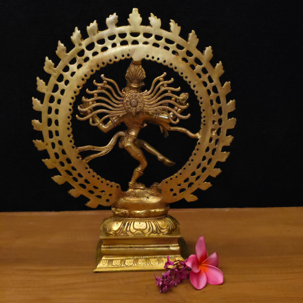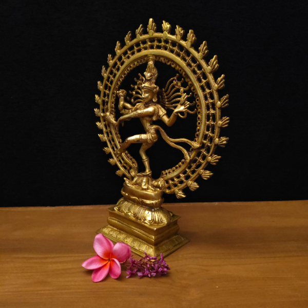This Natarajar idol is made of pure brass, depicting Lord Shiva in his cosmic dance form. It is perfect for pooja rooms, temples, or as a home décor piece, symbolizing energy and divinity. With its shiny and durable finish, it also makes a meaningful gift. Available in the Tulsi Home Store, this brass Natarajar adds tradition and devotion to any space.