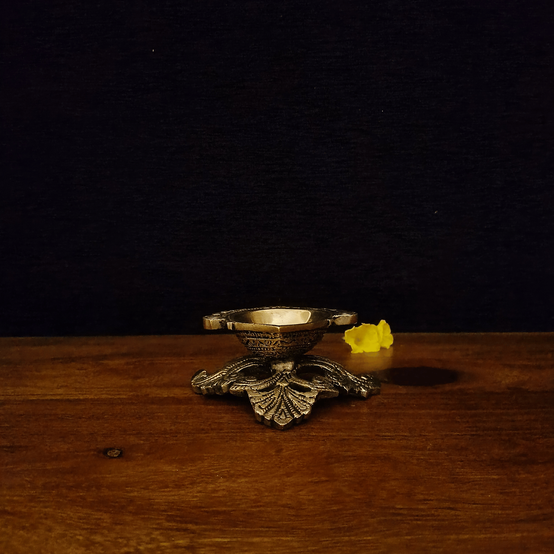 This Carving Oil Lamp is crafted from pure brass, featuring detailed traditional designs. It is perfect for pooja rooms, temples, or festivals, bringing light and devotion to your home. With its strong and shiny finish, it is long-lasting and also makes a thoughtful gift. Available in Tulsi Home Store, this brass lamp adds beauty and tradition to any space.