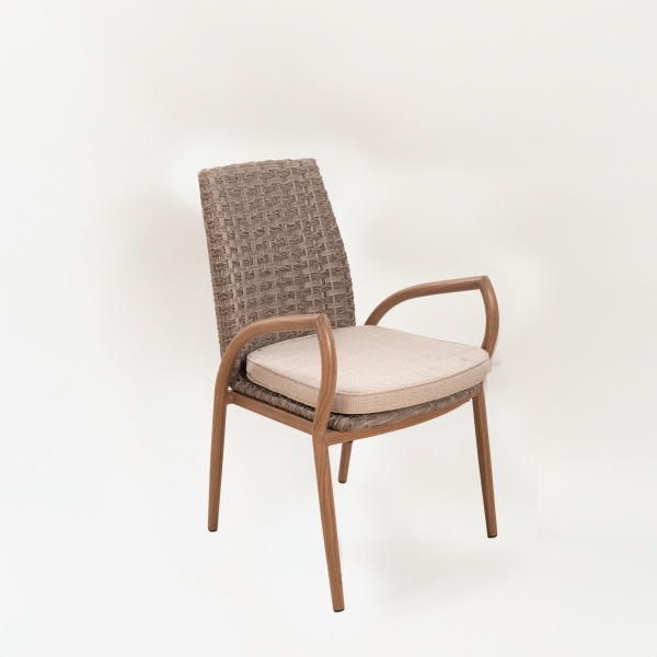 The chairs are Super Comfort and sport a slanting back. The frame of the chair is in aluminum and the seat cushion is upholstered in art leather of a highly water resistant nature.
