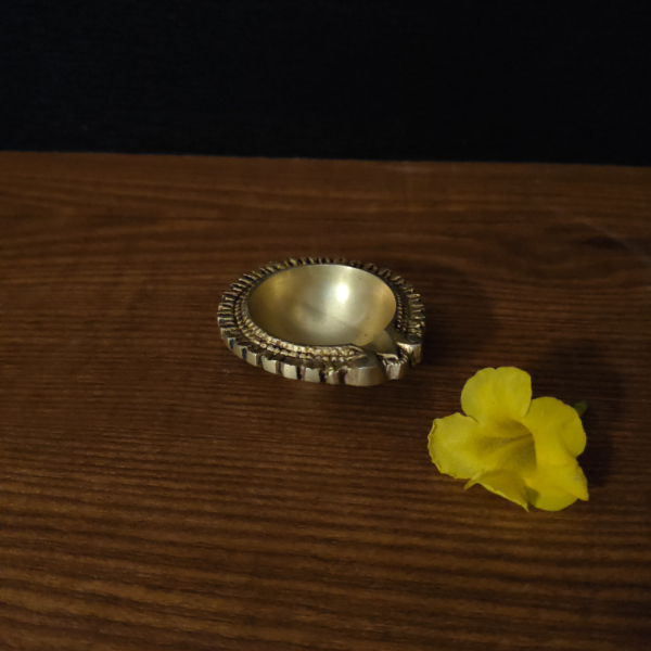 This brass diya is a simple and elegant tabletop pooja lamp with a smooth antique finish. Crafted from quality brass, it is sturdy, durable, and ideal for daily lighting. Its classic round design makes it easy to use and maintain.