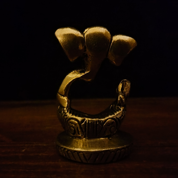 This modern small Ganesha idol is crafted in brass with a unique design. Ideal for stylish home decor, pooja, or gifting, available in Tulsi Home Store.