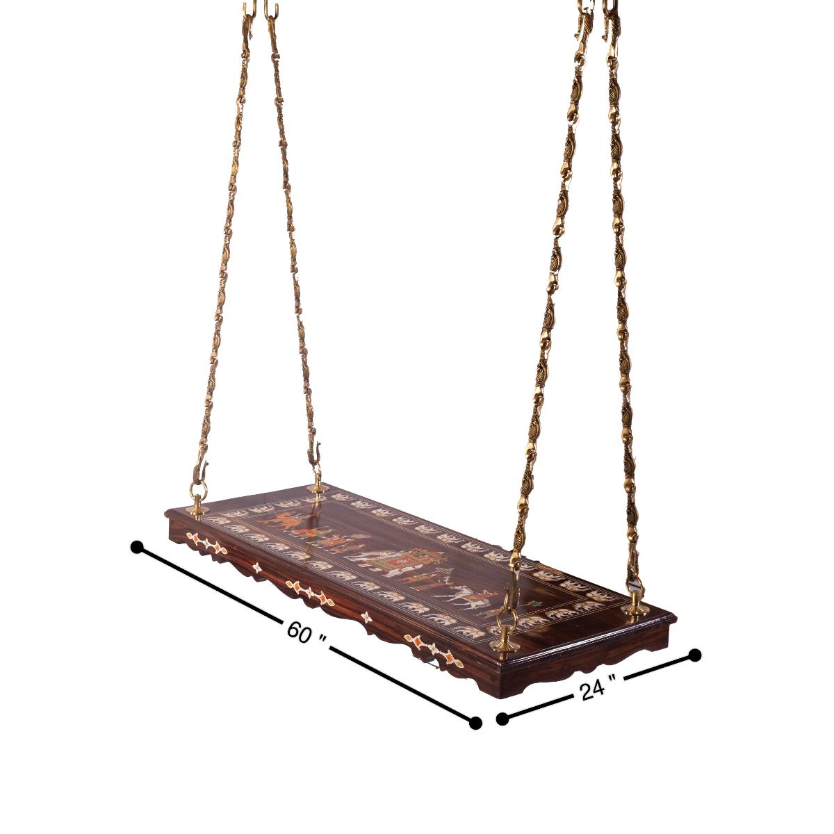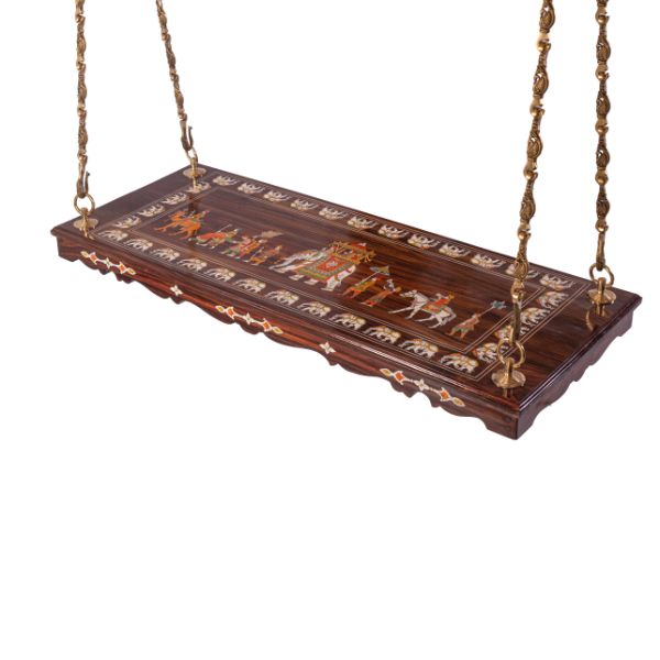 The Darbar Rosewood Swing in its impressive 6-foot design is a magnificent tribute to Indian heritage and craftsmanship. This swing is an embodiment of history, intricately handcrafted by skilled artisans who have captured the essence of royal Indian art. Its design draws inspiration from the grandeur of the Maharaja's royal procession, making it not just a functional piece of furniture but also an artistic statement. Our strict adherence to form and beauty has made our collections highly appreciated.