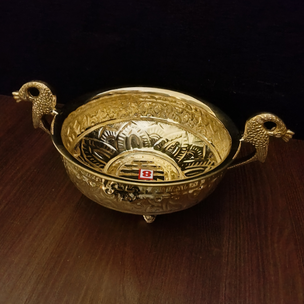 Peacock urli made with neat detailing and elegant craftsmanship. Strong, decorative, and perfect for flower arrangements, festive decor, and home display.