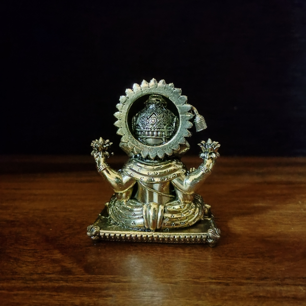 This lightweight mini Ganesha on chowki is crafted in brass with fine detailing. Ideal for pooja, home decoration, or gifting, it is available in the Tulsi Home Store.