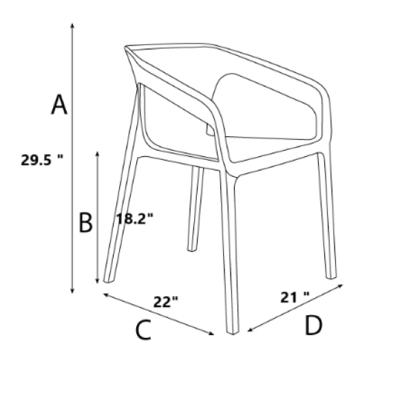 • L – 21  in x D 22 in x H 29.5 in. Seat Height 18.2 in