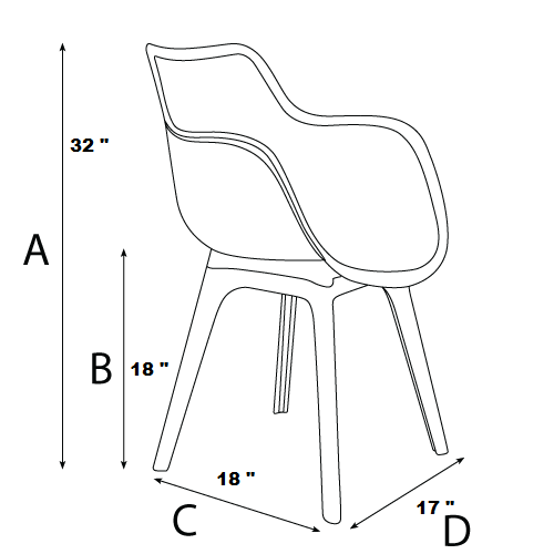 • L – 17  in x D 18 in x H 32 in. Seat Height 18 in