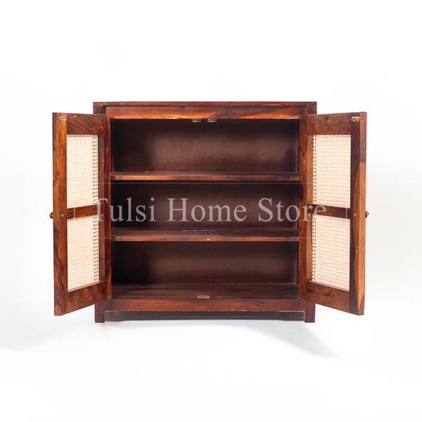 The Josh cabinet is a multi purpose cabinet made out of solid sheesham wood. Keeping in with latest trends, we have added natural cane on the doors to give that retro look. Use it in as many ways as you want, a storage unit for clothes, a crockery unit, a shoe cabinet or the rest is upto your imagination.