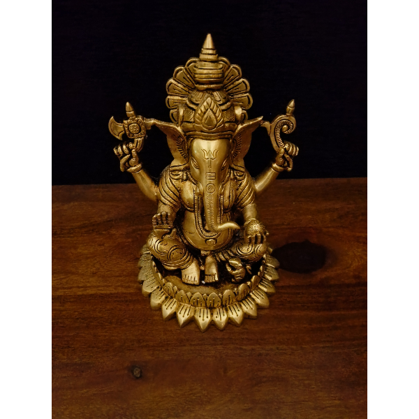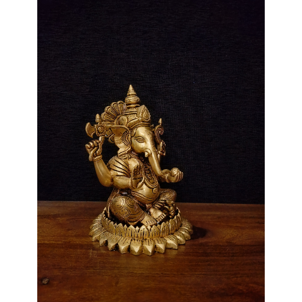 This Kamal Ganesha in 7.5-inch height is made of pure brass, bringing a traditional and divine look to your home or pooja room. Its detailed design on lotus base makes it a beautiful piece for worship and décor. Available in Tulsi Home Store, this brass Ganesha is also a thoughtful gift choice.
