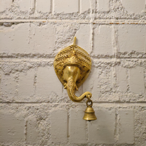 Pure brass Ganesha wall hanging with bell, beautifully handcrafted with detailed carvings and a traditional antique finish. Designed to bring positivity and divine blessings, this wall décor is perfect for entrance door décor, as well as pooja rooms and living spaces. The gently hanging bell adds a spiritual charm, while the solid brass build ensures long-lasting use. Available at Tulsi Home Store, it is ideal for home décor, festive decoration, and auspicious gifting.