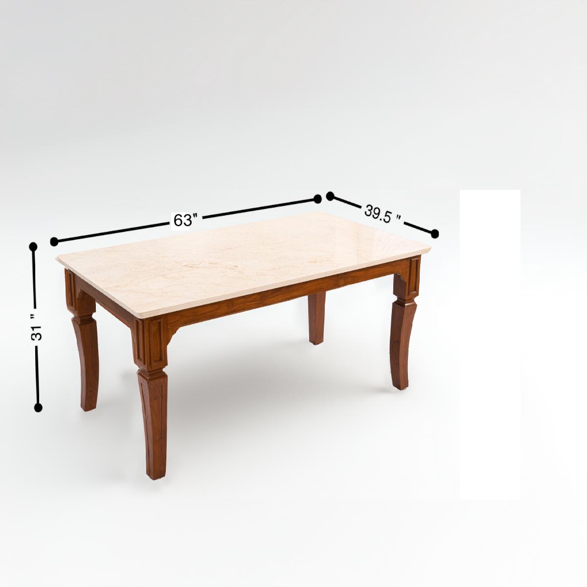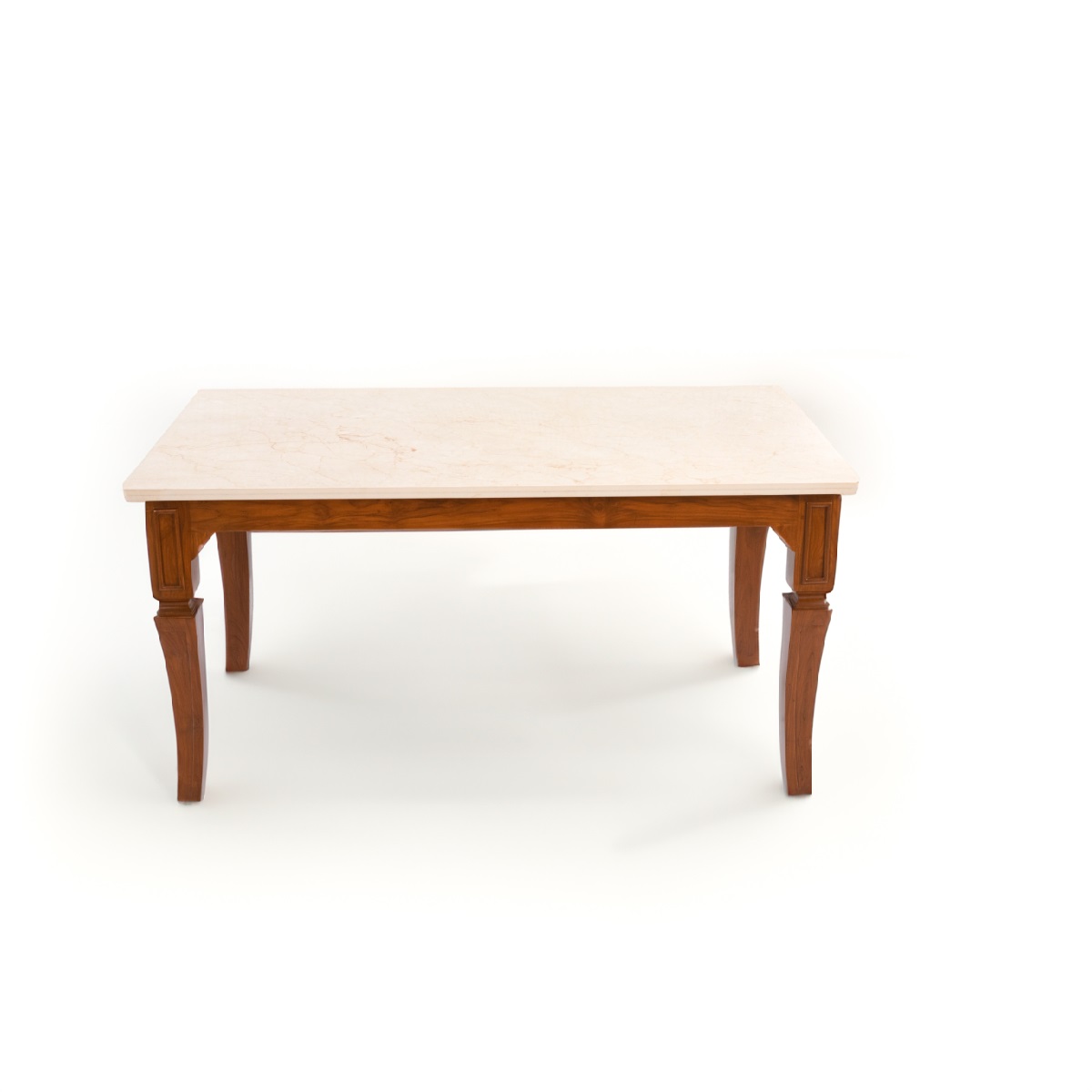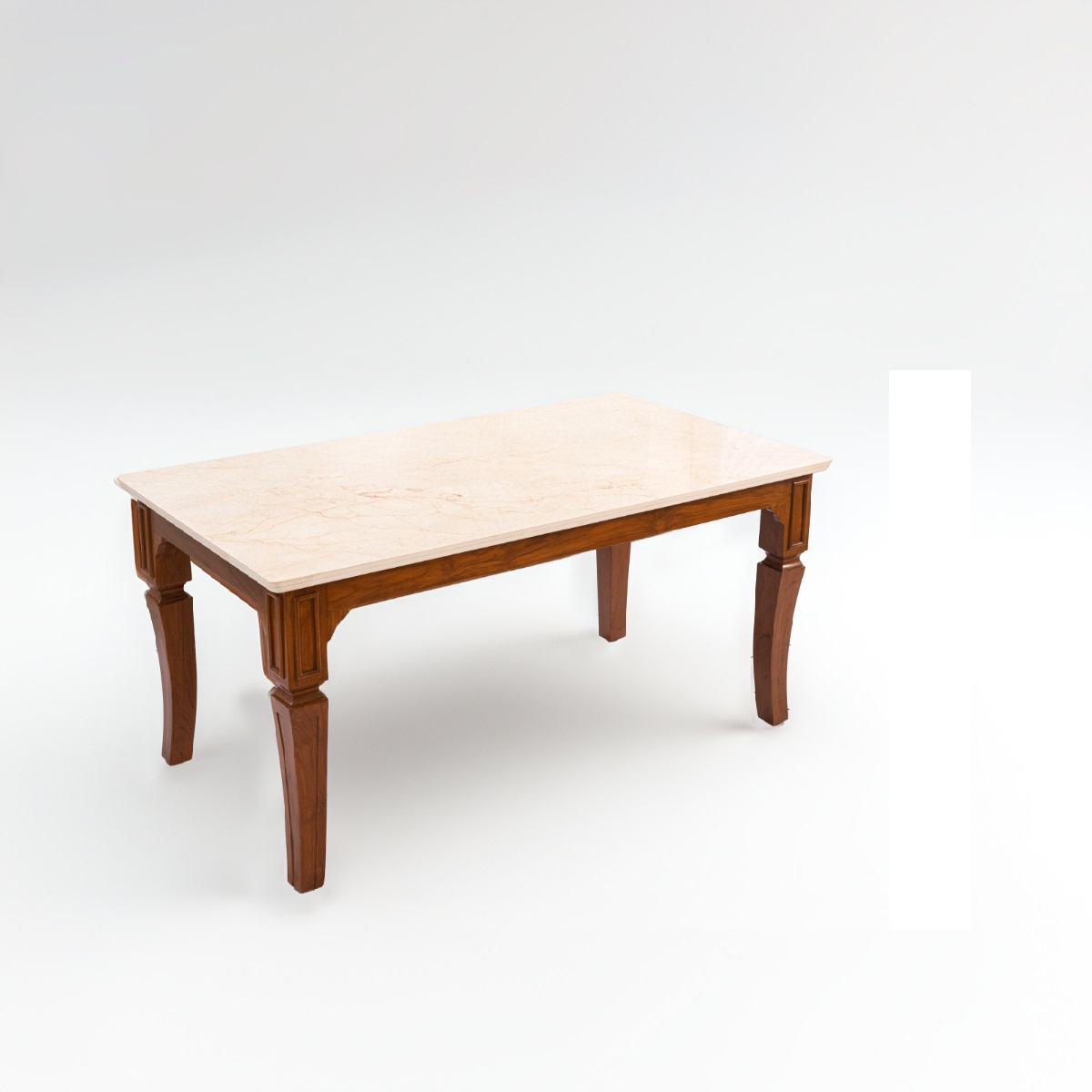 The art marble/ceramic tabletop is not only visually stunning but also incredibly functional. Offering exceptional durability, scratch resistance, and easy maintenance, it sits atop a solid Four-Leg teak wood frame. The semi-matte polish enhances the beauty of the natural wood grain, lending warmth and elegance to the overall design.
