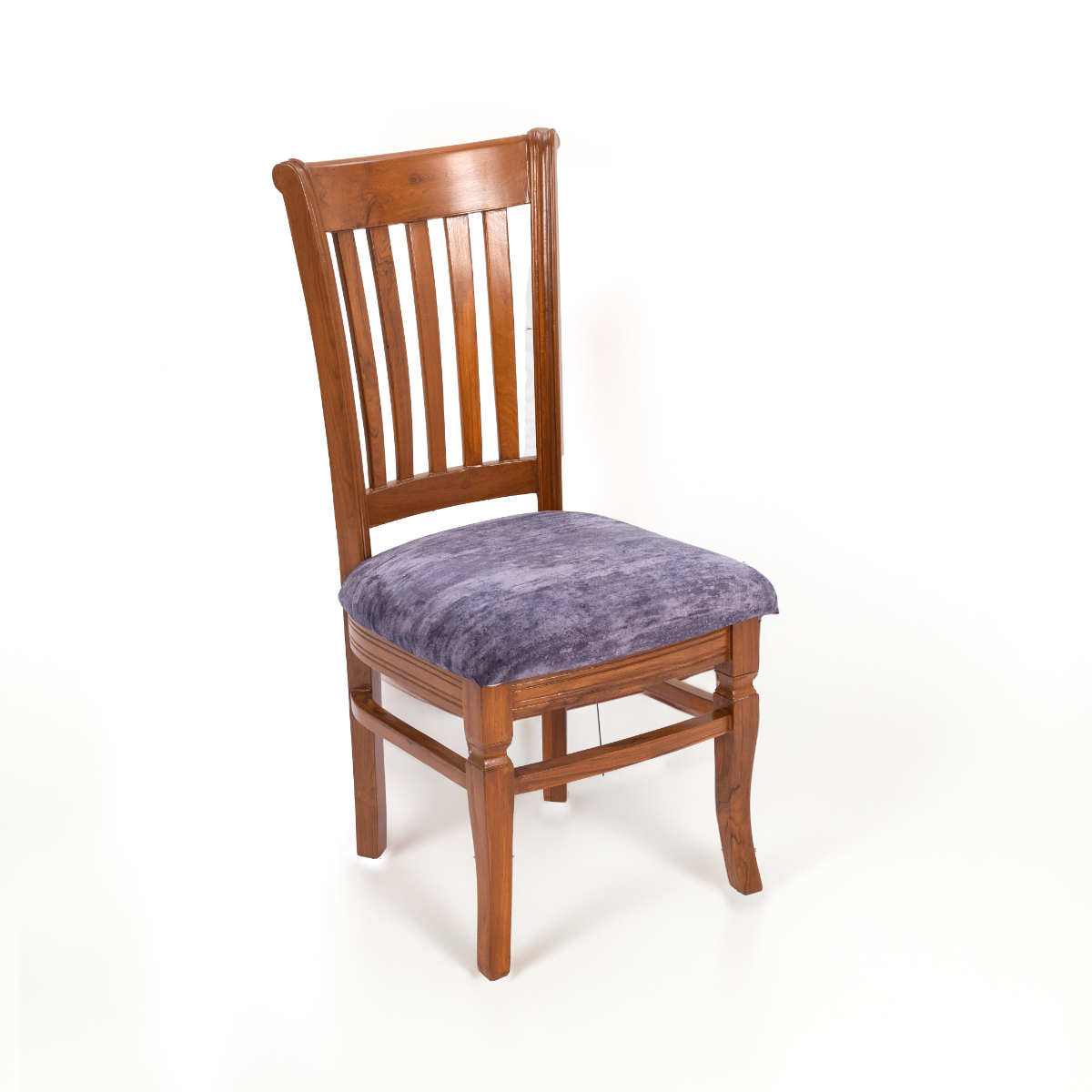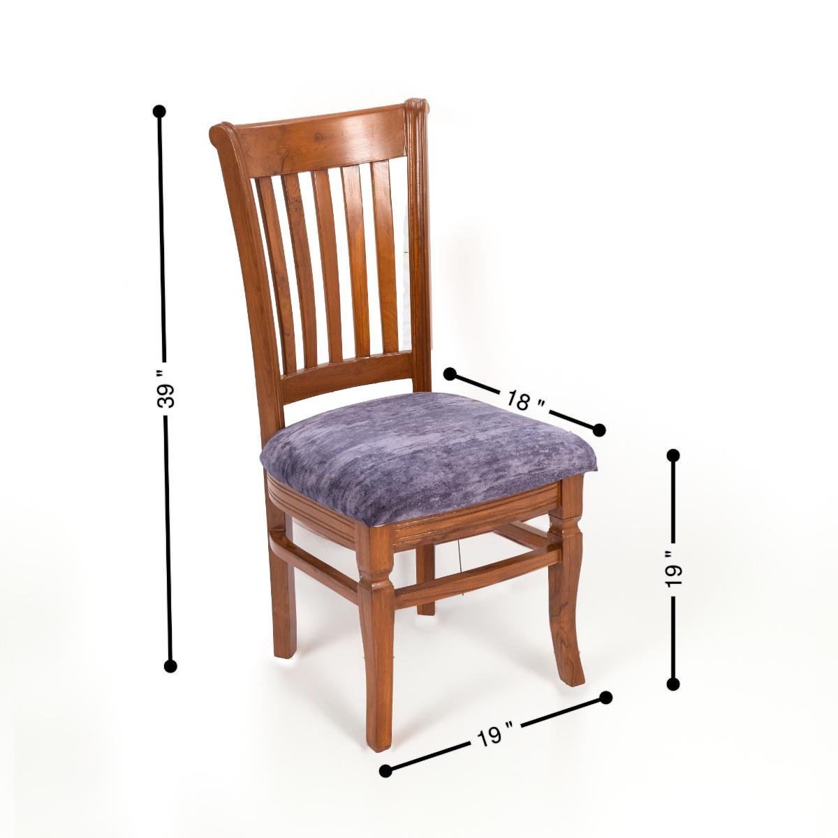 This Dining Set with 4 chairs is another model in our range of Teak wood dining sets. The chairs, made entirely from solid teak wood, feature a curved back design for optimal comfort. The upholstered seat in velvet fabric gives good cushioning to the user.