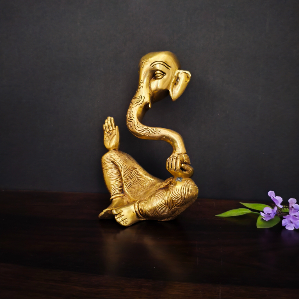 The idol features a stylized silhouette with a smooth antique or matte brass finish, offering a calm, meditative presence without fine ornamentation. Its artistic simplicity makes it a versatile decor piece that blends effortlessly with both traditional and modern interiors. Whether placed on a shelf, work desk, or puja corner, this idol symbolizes intellect, clarity, and inner peace—while making a tasteful statement in your space. This statue is perfect for wedding gift, home decoration, office decoration.