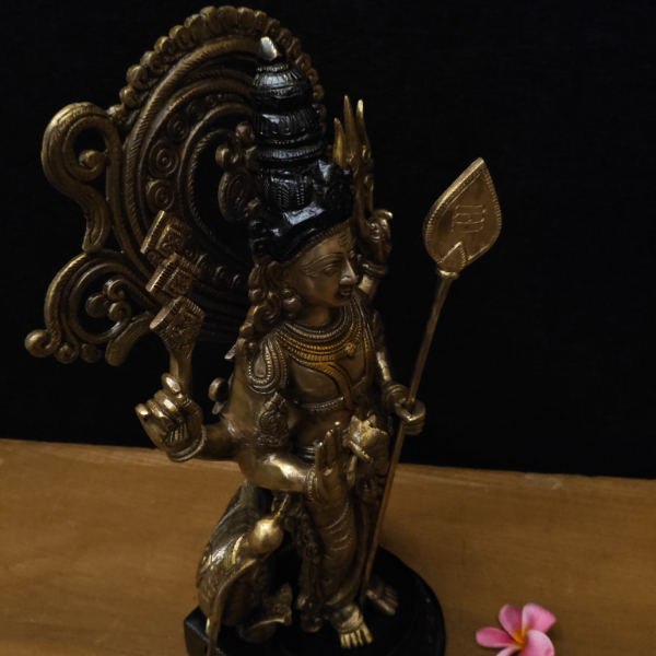 This Brass Murugan Idol with Copper Coating is beautifully crafted with intricate traditional detailing. Lord Murugan is depicted holding the Vel (spear), symbolizing courage, wisdom, and protection. The rich copper coating enhances the divine appearance and gives a unique two-tone finish.