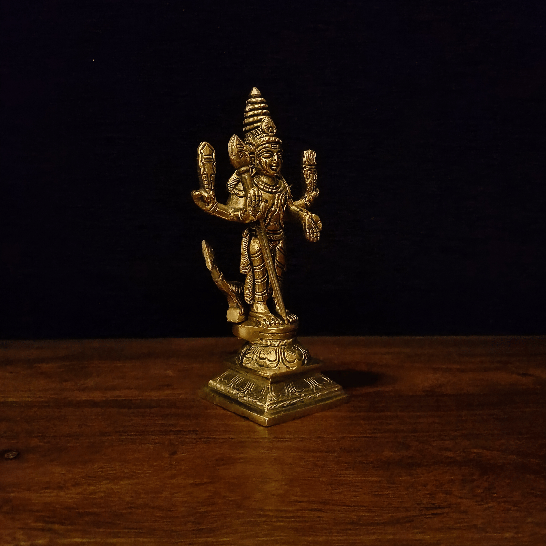 This Murugar idol is crafted from pure brass, symbolizing courage, strength, and wisdom. It is perfect for pooja rooms, temples, or as a home décor piece, bringing divine blessings to your space. With its shiny and durable finish, it is also ideal for gifting. Available in Tulsi Home Store, this brass Murugar idol adds devotion and tradition to any home.