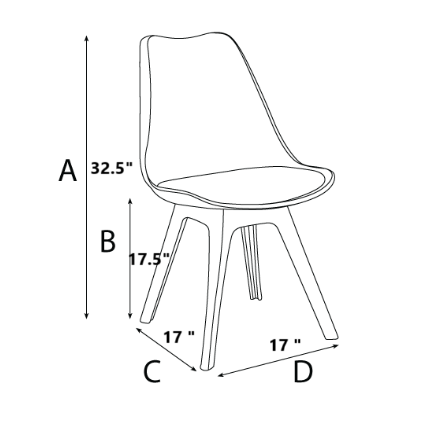 L – 17 in x D 17 in x H 32.5 in. Seat Height 17.5 in