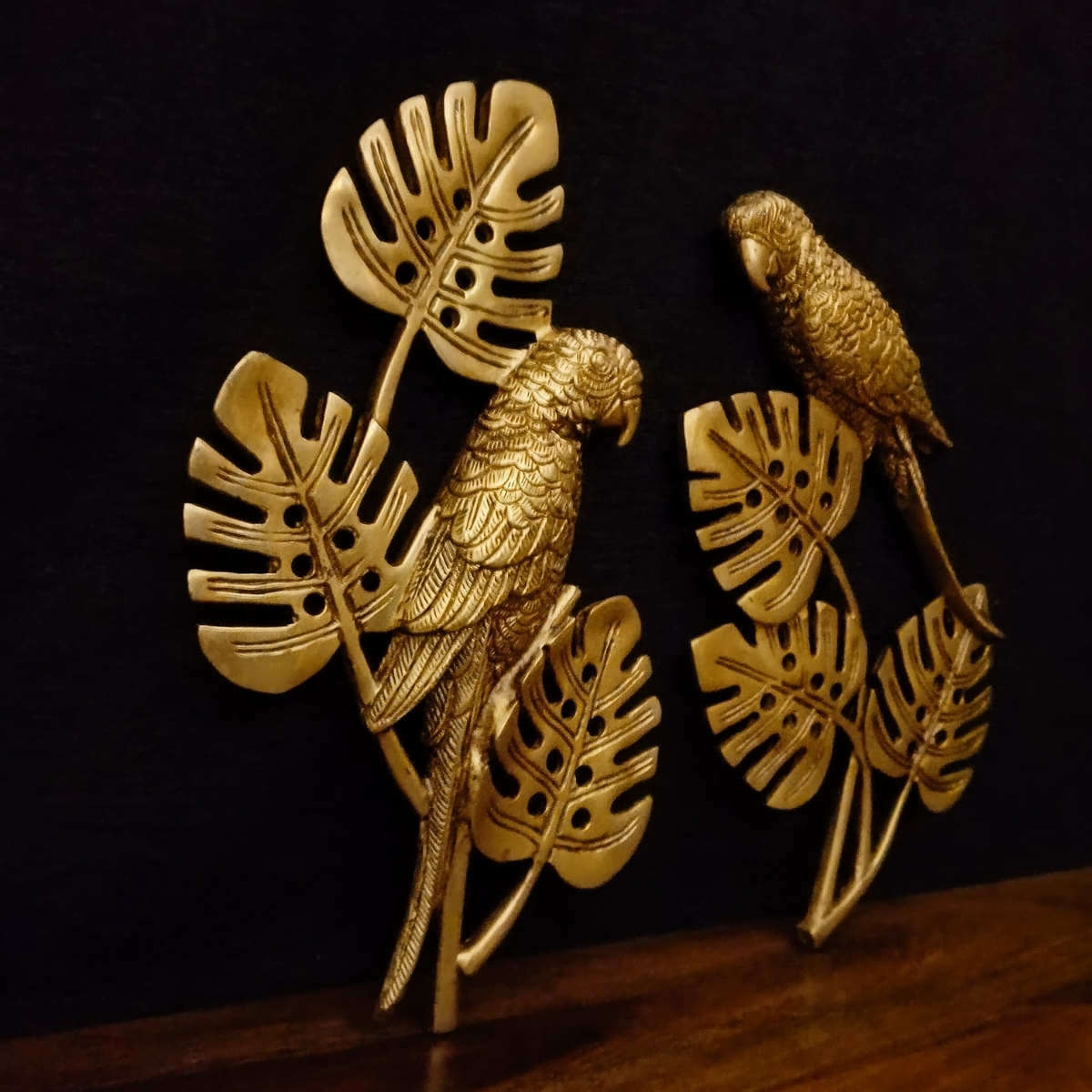 The parrot wall hanging features vibrant detailing that adds charm and elegance to any space. Perfect for home decoration or gifting, available in the Tulsi Home Store.