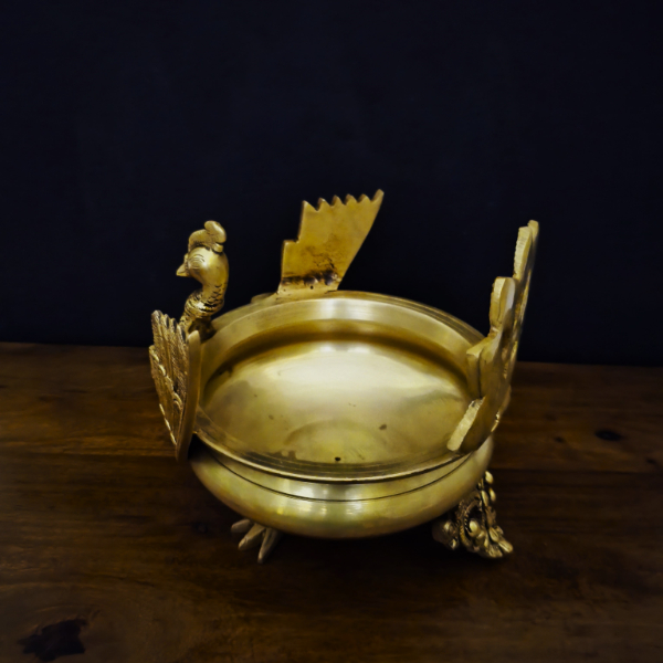 Bring charm to your space with this beautifully crafted Peacock Designed Urli. This beautiful urli is decorated with finely carved peacocks that are carefully put around the rim, implying grace and beauty. It gives your decor a festive and classic feel, whether it is left alone or filled with water and floating flowers. Ideal for pooja rooms, entranceways, or living areas, this decorative urli blends tradition with artistry to uplift any setting.