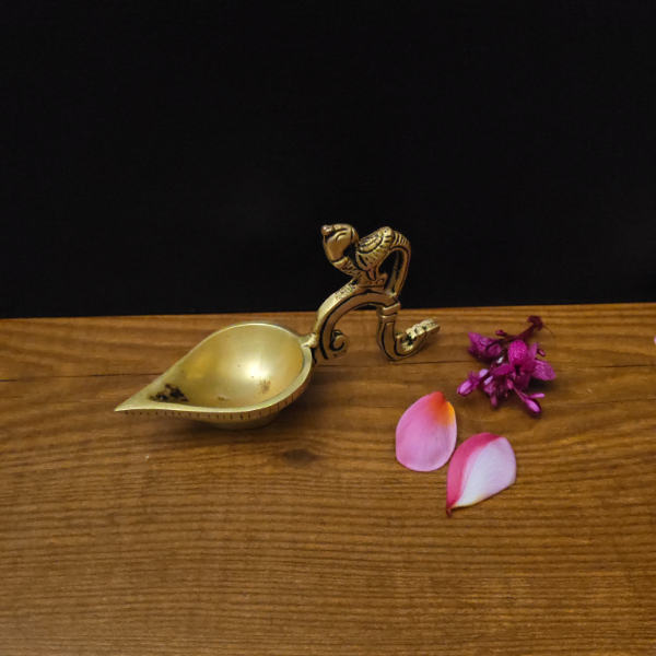 This pure brass peacock oil lamp is intricately designed, adding a traditional and elegant touch to your pooja or home decor. Durable and perfect for gifting, available in Tulsi Home Store.