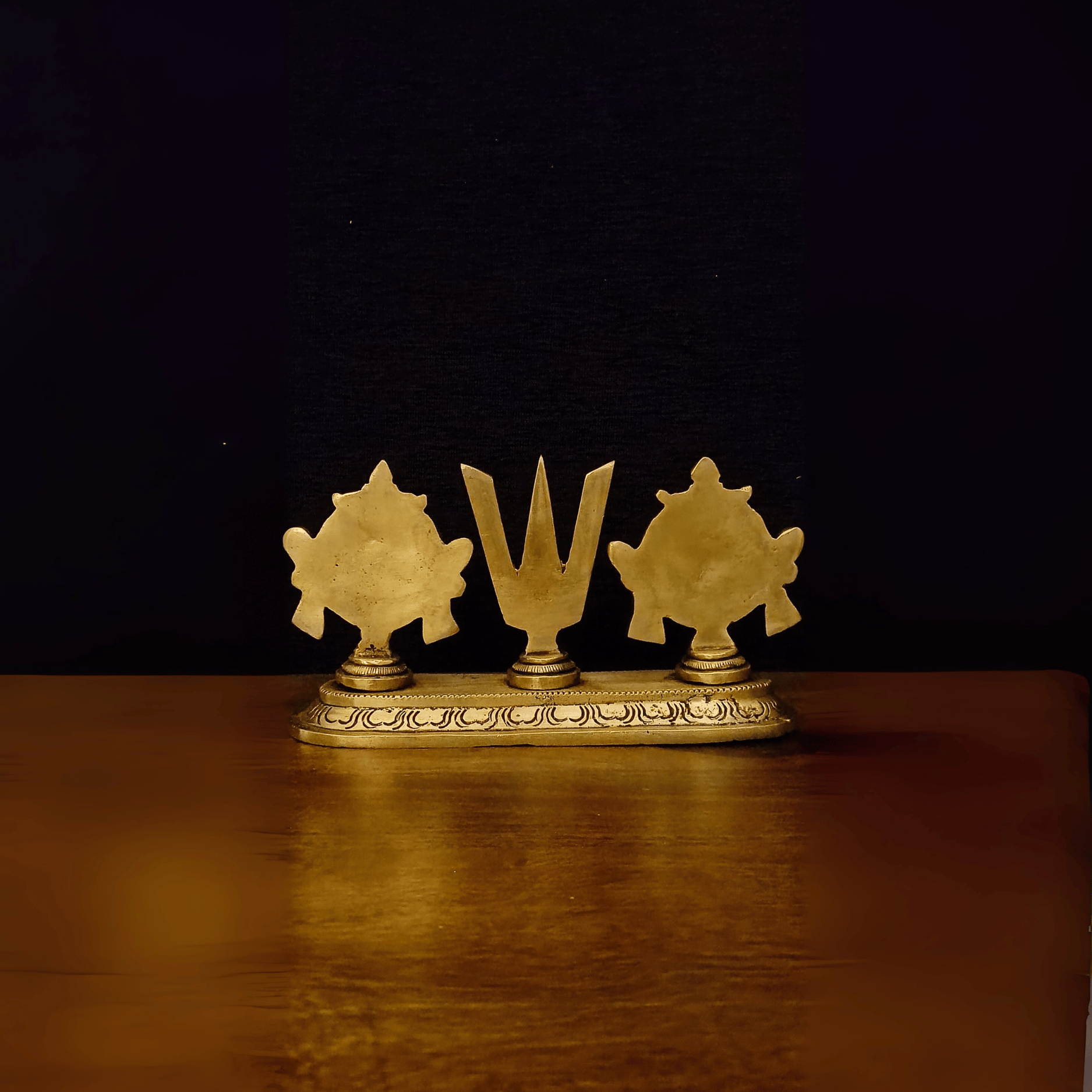 This Sankha Chakra of Lord Vishnu is crafted from pure brass, symbolizing protection, power, and divinity. It is perfect for pooja rooms, temples, or home décor, bringing a sacred presence to your space. With its shiny and durable finish, it also makes a meaningful gift. Available in the Tulsi Home Store, this brass Sankha Chakra adds devotion and tradition to any home.
