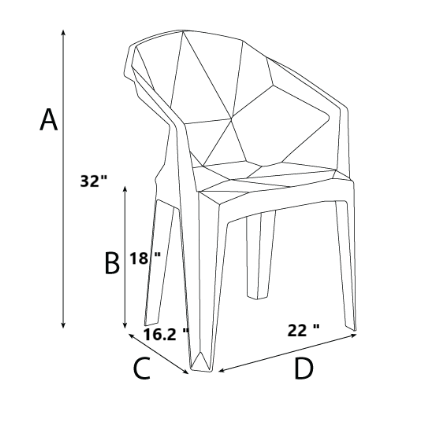 A modern plastic chair with a hexagonal backrest design, offering lightweight durability and a contemporary aesthetic.