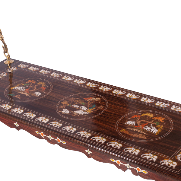 The Violet Rosewood Swing is another impressive 6-foot design is a magnificent tribute to Indian heritage and craftsmanship. This design is a simpler alternate to the Darbar rose wood swing. This intricately handcrafted design draws inspiration from the grace of the Royal Indian elephant.