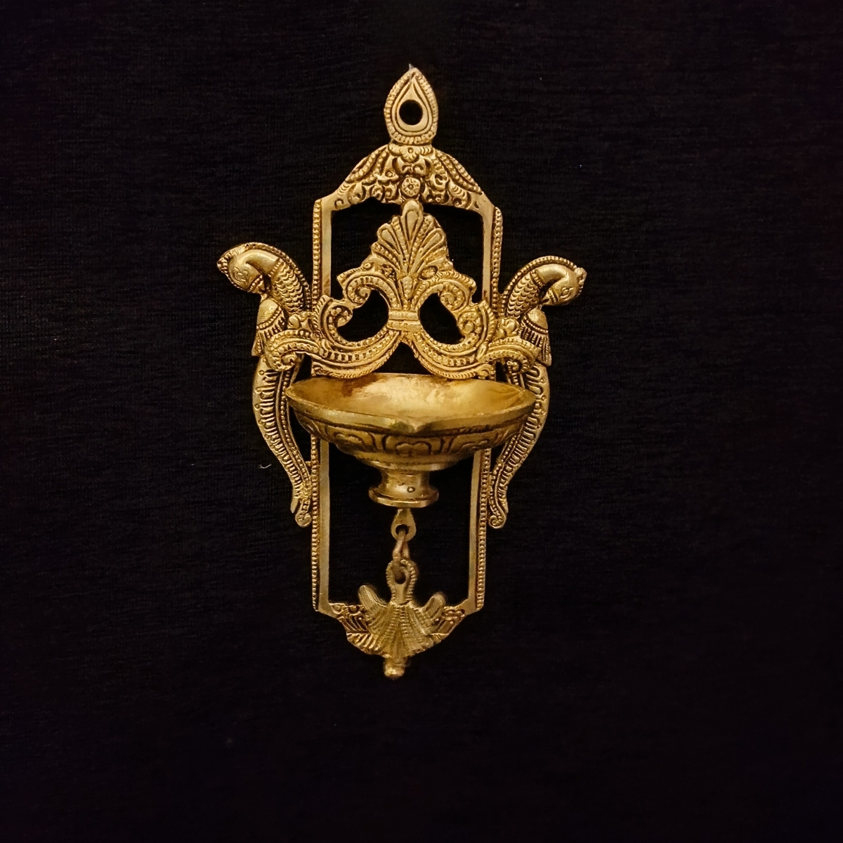 This wall hanging diya with bird is crafted with fine detailing, adding a traditional and elegant touch to your walls. Perfect for home decoration or gifting, available in Tulsi Home Store.