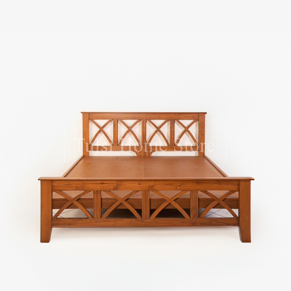 The Xylo Teak Bed features a bold X-shaped headboard and leg board, creating a striking visual impact in any bedroom. Made from solid teakwood the queen bed is ideal for those who value a innovative design and lasting durability in their furniture.