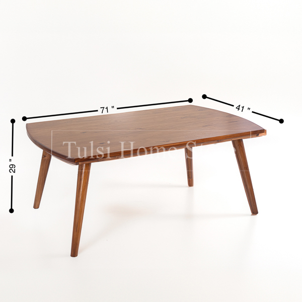 The teak veneer top adds a sleek, polished surface that enhances the table’s elegance while maintaining a seamless, cohesive look. This design is ideal for those who appreciate the timeless beauty of teak wood combined with modern craftsmanship.
