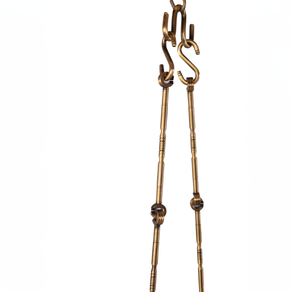 We sell several designs of brass chains that can be found in this site as well. Featured here is a simple brass chain that has been used to suspend this swing. The brass not only provides a sturdy and reliable suspension but also complements the teak wood with its warm golden hue, creating a harmonious contrast.