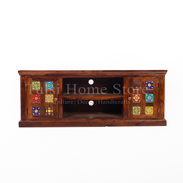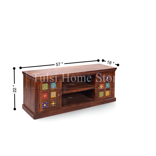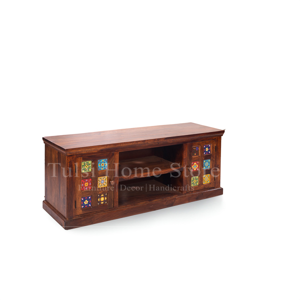 The Milan Sheesham Wood LCD Stand is part our Milan series that has the colorful ceramic tiles as its highlight. This unit which is almost 5 feet in length is good for LCDs upto 60 inches. It has 2 doors on either side and the centre part has a shelf that can take your set top box, remotes and the like. The Milan LCD stand in solid wood is a great buy at this price. It will surely add charm to your living area.