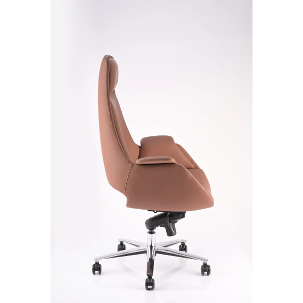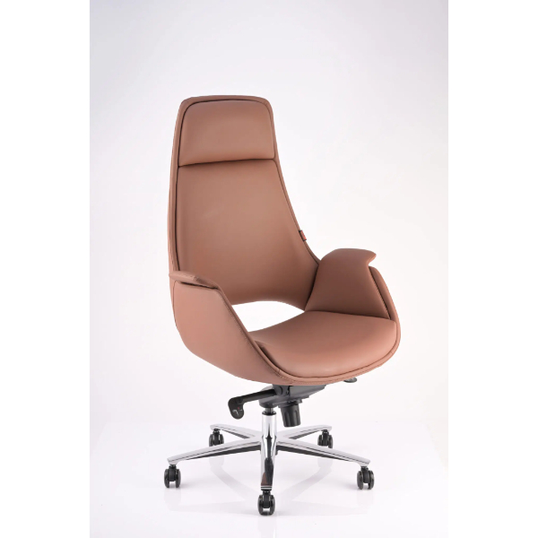 Upgrade your workspace with this stylish and comfortable high-back chair in Creek Brown. Upholstered in genuine rexin and supported with imported plywood, this chair is designed for both durability and long-lasting comfort.