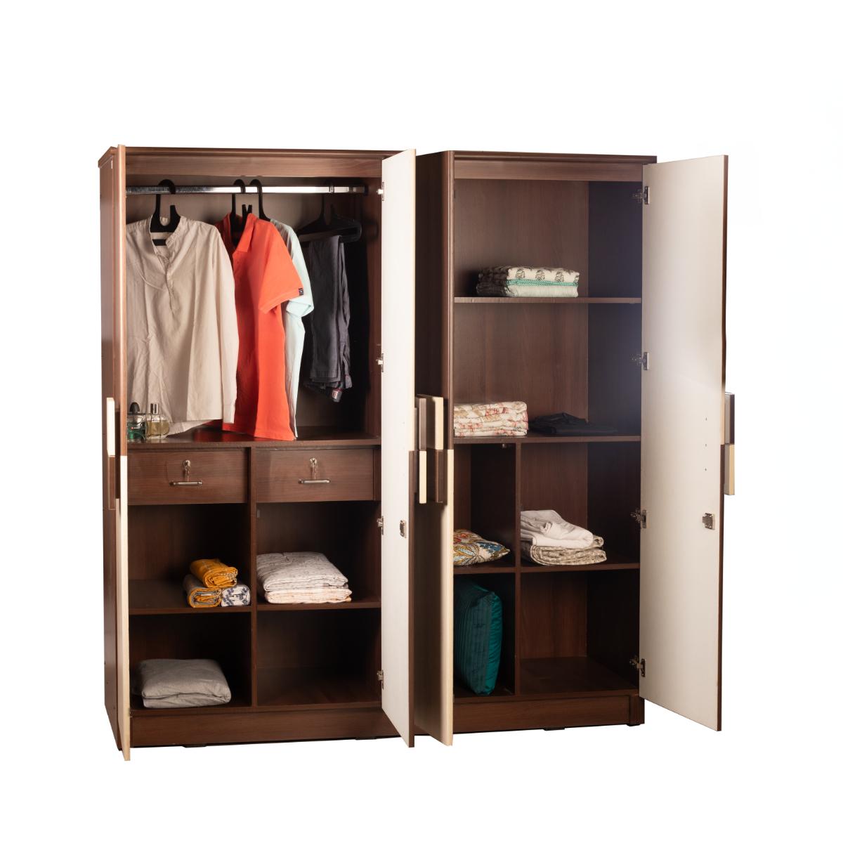 The Tulip has a well designed inner structure giving you all that you desire for in a wardrobe. A hanger space along with 2 drawers goes into the Left side double door, while the right side double door gives full storage space. It has multiple shelves within to enable easy storage of clothes, bags and other articles. Designed in a double color to suit all home décor types, this wardrobe is spacious and will add an element of style to your dressing area or bedroom.