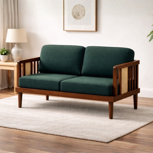- Functionality: Comfortable seating with thick foam cushions. Easy to clean below the sofa. Robo cleaner space available beneath the frame. Hardly any maintenance required for the mahogany wood frame. Just wipe periodically with a dry smooth cloth.
