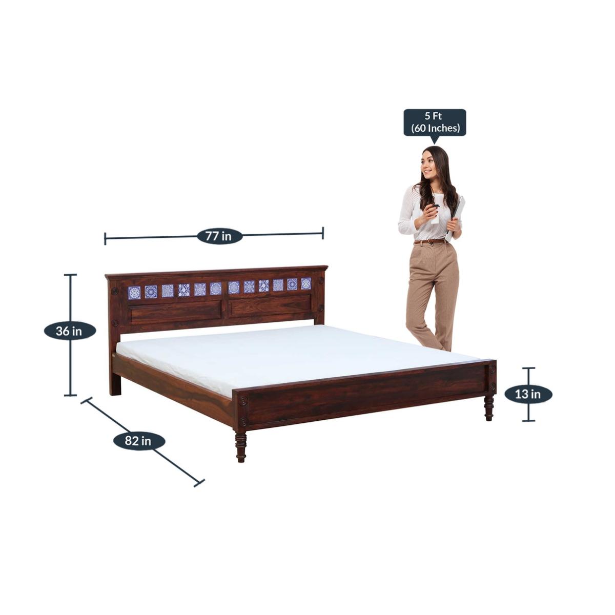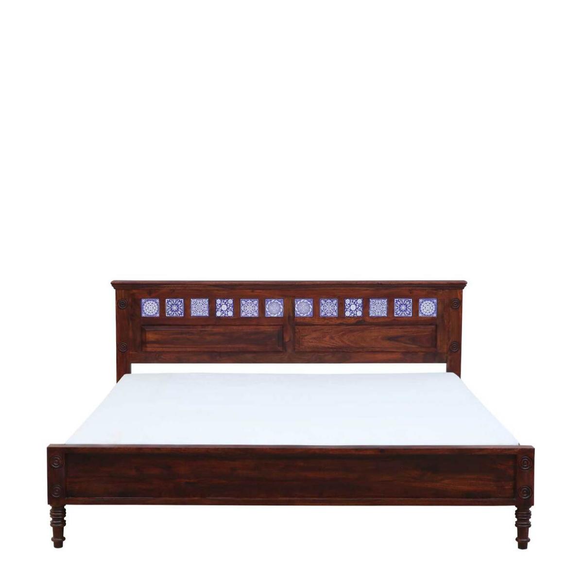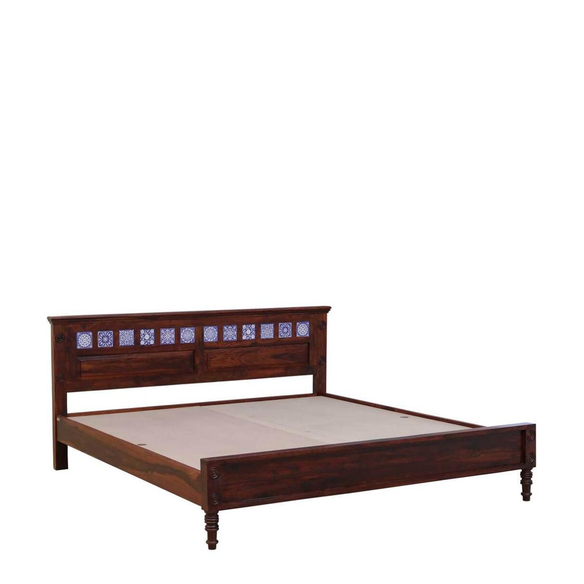 Introducing Amber, a classic bed that exudes elegance and comfort. Crafted with the finest solid Sheesham wood, this bed features a stunning headboard adorned with blue white tiles, adding a delightful pop of artistry to the overall design. The blue white hues in the tiles draw inspiration from the word Neel - Chini ( blue - white color of sugar ). We have an entire series of products in this series - beds, dressers, mirrors, chests, wardrobes and side tables.