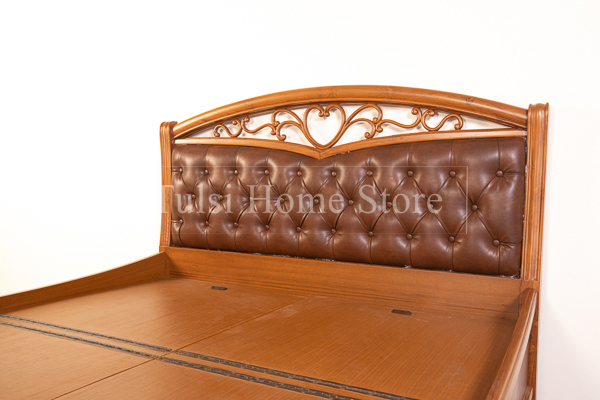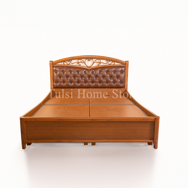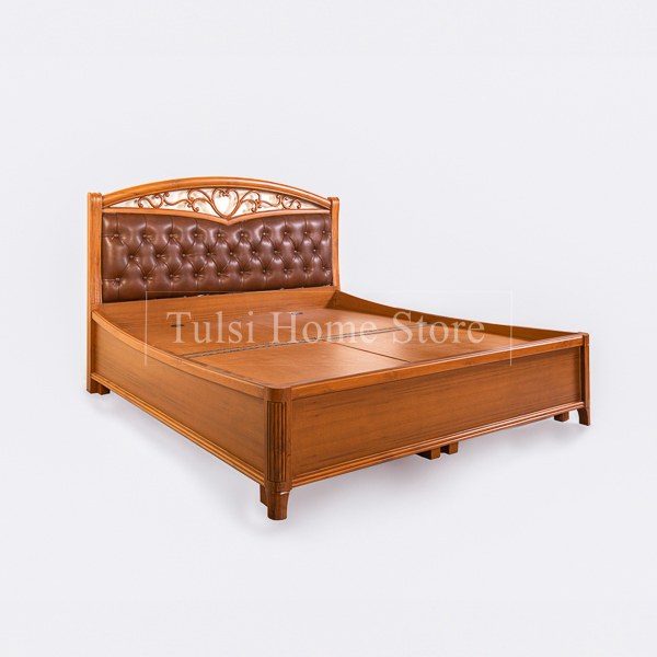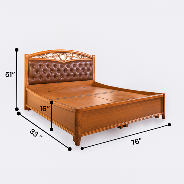 The Diwana Cushion King Bed combines functionality with comfort, featuring a sturdy teakwood frame and convenient box storage under the mattress for efficient space use. The cushioned backrest provides added support, ideal for reading or lounging.