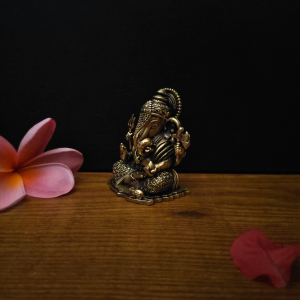 This seated brass Ganesha idol is finely crafted with detailed features and a rich antique finish. Lord Ganesha symbolizes wisdom, success, and removal of obstacles, making it ideal for daily pooja and auspicious occasions. Perfect for pooja rooms, living room shelves, office desks, or gifting, it brings calm and positive energy to your space. This elegant brass Ganesha idol is available at Tulsi Home Store.