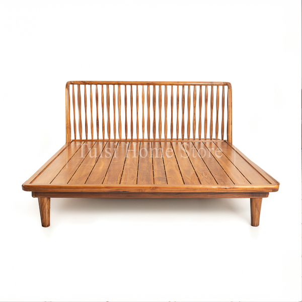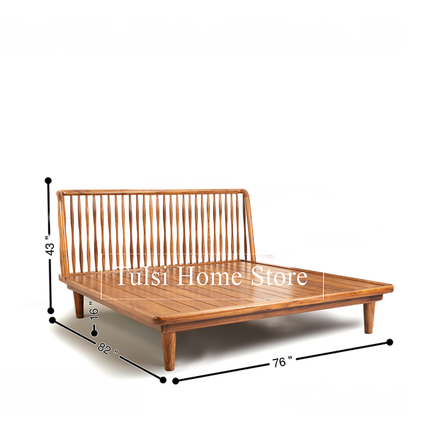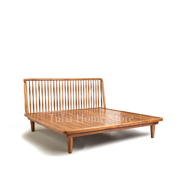 We have 3 models in the Puran queen size beds. The only difference is the design within the barrel wood frame. Take a closer look to see the difference. In the model featured here the rods are given a double sized thickness design. In the other design the rods are straight without any change in the thickness. The third design has an X shape teak reapers within the barrel frame.