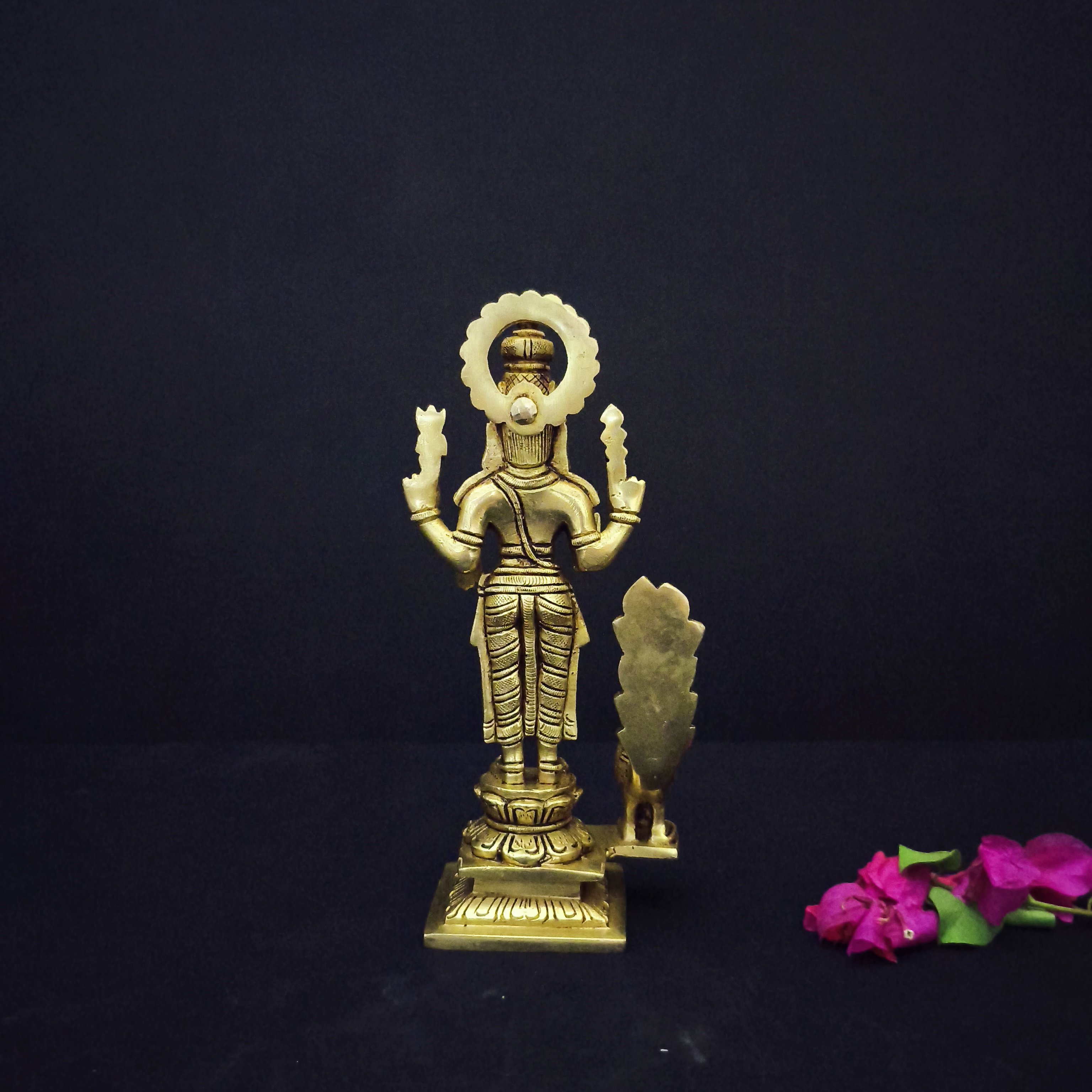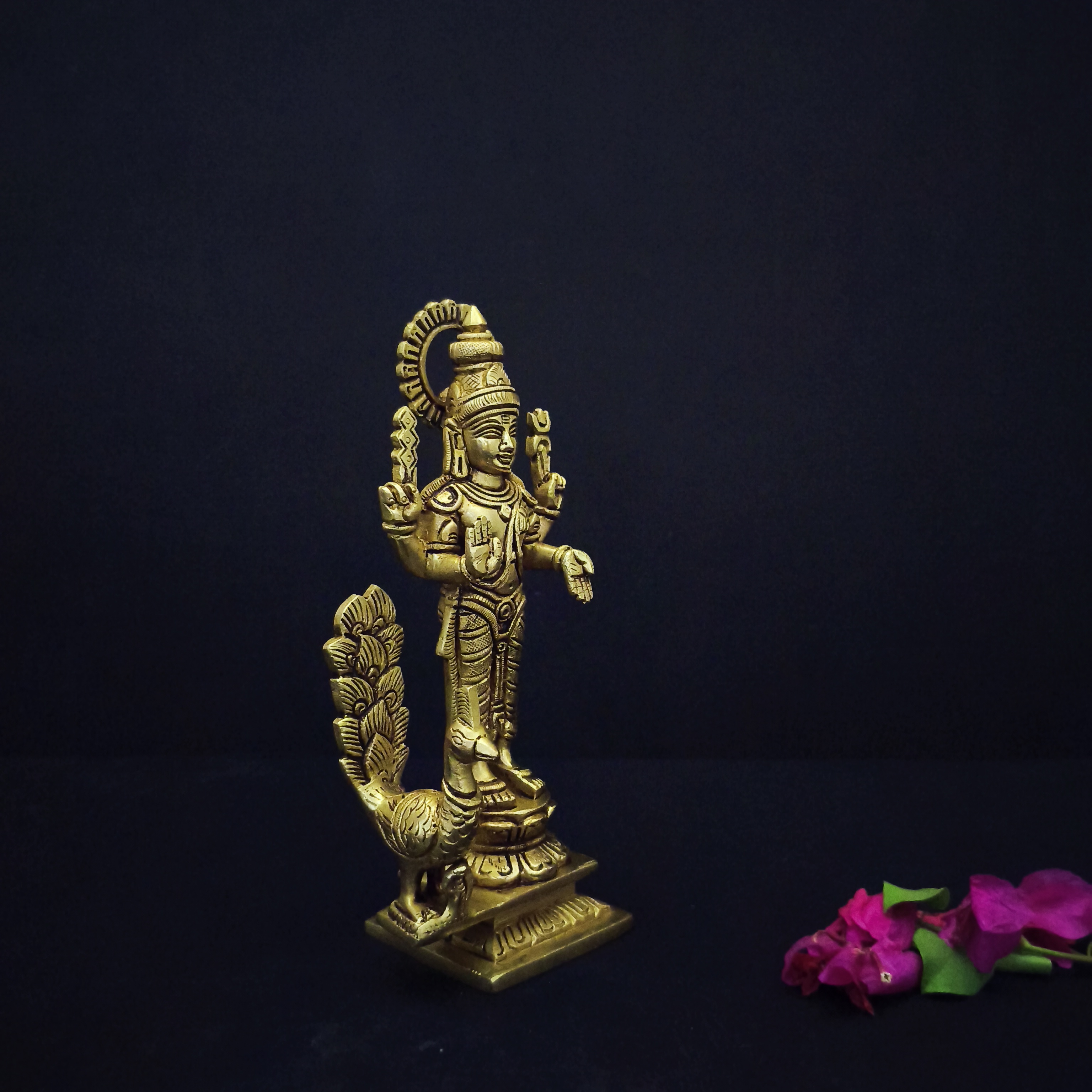This Murugar idol is crafted from pure brass, symbolizing courage, strength, and wisdom. It is perfect for pooja rooms, temples, or as a home décor piece, bringing divine blessings to your space. With its shiny and durable finish, it is also ideal for gifting. Available in Tulsi Home Store, this brass Murugar idol adds devotion and tradition to any home.