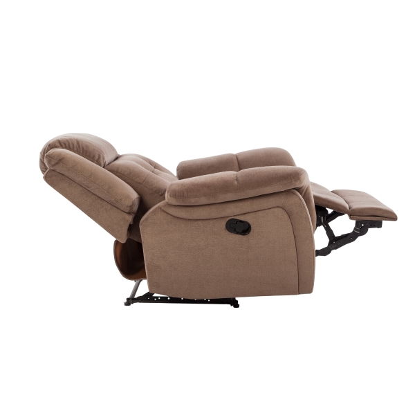 The NEMO Single Seater recliner sofa is a plush, comfortable piece designed for relaxation. It has a soft, padded back with tufted detailing, along with generously cushioned armrests and a manual reclining mechanism on each side of the single Seater. The reclining feature offers good leg support and a laid-back angle, perfect for lounging.