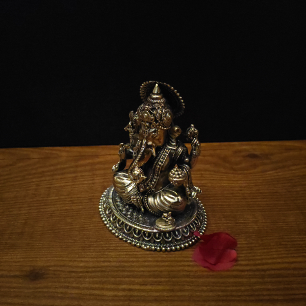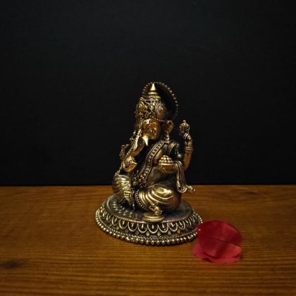 This lightweight brass Ganesha idol is finely crafted with detailed features and a smooth antique finish. Lord Ganesha symbolizes wisdom, success, and the removal of obstacles, making this idol perfect for daily worship and positive beginnings. Despite its detailed look, the idol is lightweight, easy to place, and simple to maintain.